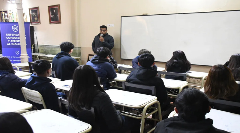 Estudiantes del Colegio secundario Arturo Illia participaron de una capacitación sobre derechos del consumidor enfocada en los servicios más contratados durante el último año escolar: viajes de egresados, catering, salones e indumentaria de la promoción.